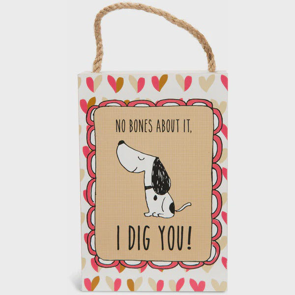 Looking for the paw-fect gift that speaks straight from the heart? Look no further! Our adorable hanging sign featuring a lovable black and white pup and the playful message 'No Bones About It, I Dig You!' is a must-have for dog lovers and anyone who appreciates a little whimsy in their décor.