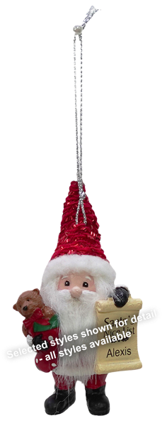 Celebrate the magic of the season with our Santa’s Nice List Name Ornament — a festive keepsake featuring jolly old St. Nick holding a teddy bear and a scroll filled with names from his Nice List. These adorable ornaments come pre-printed with a wide variety of names from T to Z — and we have a second version for names from A to T, too!