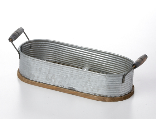 Rustic, metal tub with handles