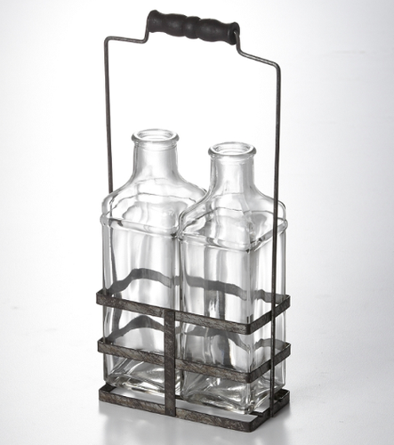 Vintage Metal Holder w 2 Glass Bottles