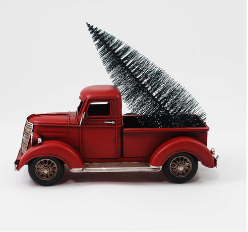 Vintage Red Truck & Tree