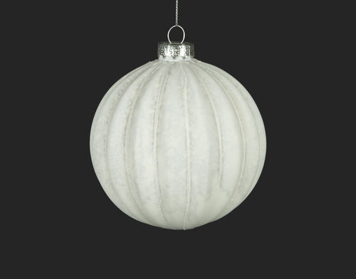 White Ribbed Ball Ornament