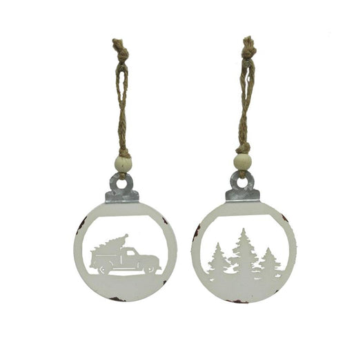 Whitewashed Metal Ornament w Pinecone Design