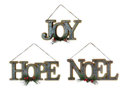 Festive Word Galvanized Metal Ornament
