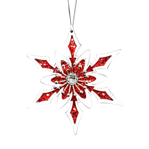 Red & White Wooden Snowflake Ornament