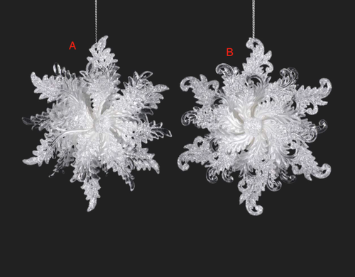 Mistletoe Krystal Pine Snowflake Ornament 3 asst