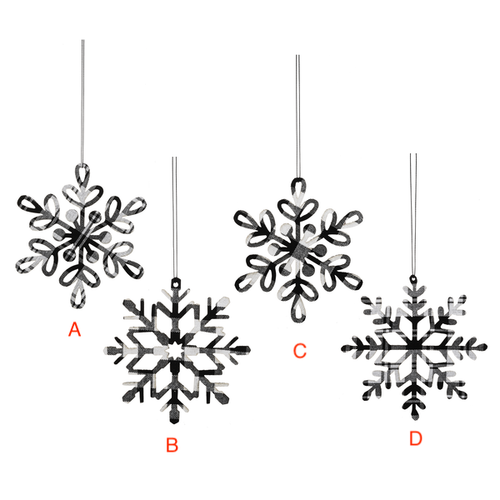 Black and White Fabric Snowflake Ornaments - 4 styles